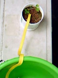 ひもとバケツを使った自動水やり機?を設置しました。うまく機能してくれるといいけど…
