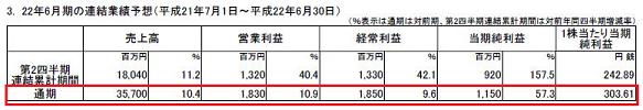 09.6月期の最終利益は730百万円となり