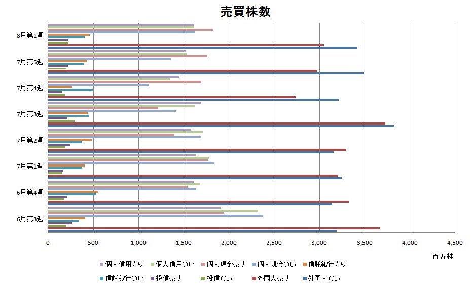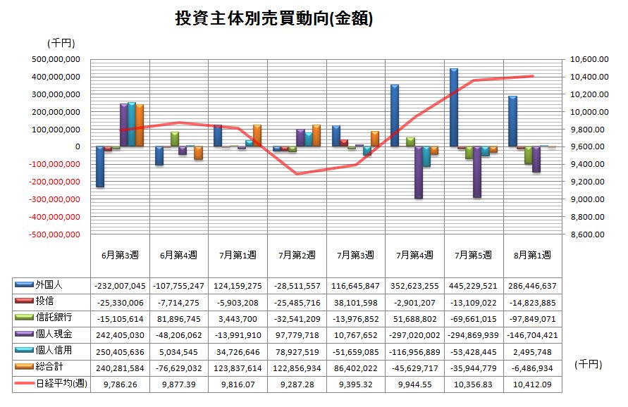 売り金額が4402億円と、6月第4週以来の大幅な売り