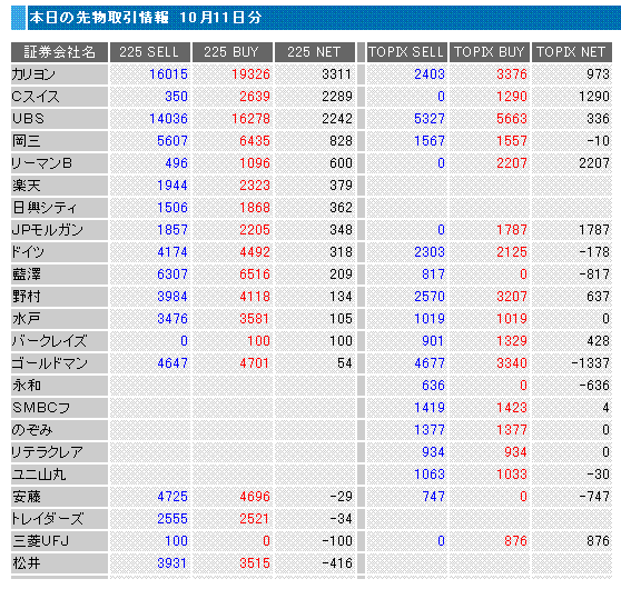 ・日本市場は大幅反落。本日はオプションSQで、SQ値は17,450.33円、ザラ場の日経平均高値は17,441.75円で幻のSQ値になりました。朝方は、NY市場の下げの割には強い感じでしたが、徐々に下げていき、後場は一段安になりました。先物手口を見ると、昨日買い捲っていたカリヨンやUBSが売っていますね。恐らく、コール売りのヘッジで買わされたのが多かったでしょうから、SQ過ぎれば手仕舞いするということでしょう。