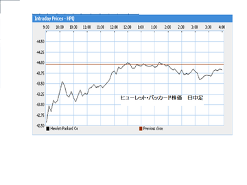 また、予想を下回る決算で懸念されたヒューレット・パッカードの株価ですが、ザラバで次第に回復して、0.3%と小幅の下げで終了しています。しかも、引け後の時間外では0.3%上昇しています。