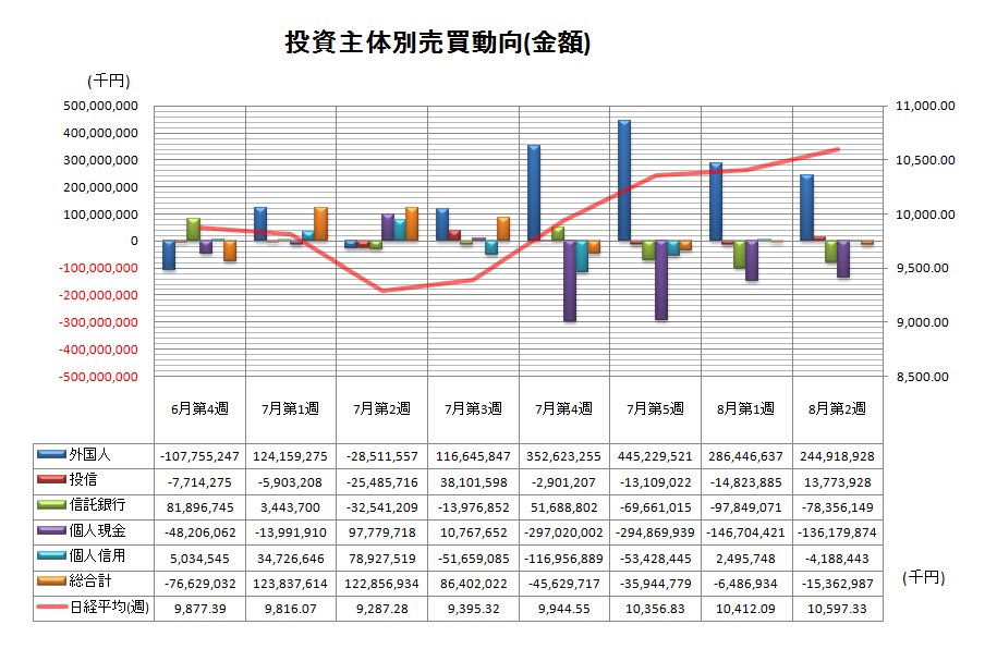 外国人は4週連続の買い越しで、買い越し額は