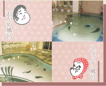 画像のように浴槽がひょっとことおかめの顔になっており、レトロ感がいい感じでした。