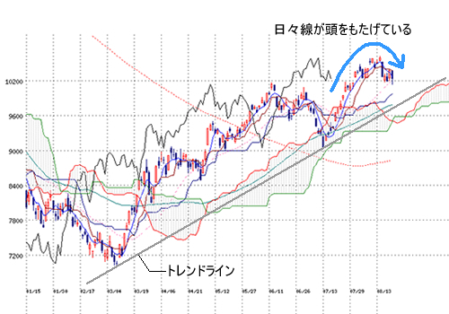 特に直近の日々線の動きが頭をもたげてお辞儀しているような形になっています。