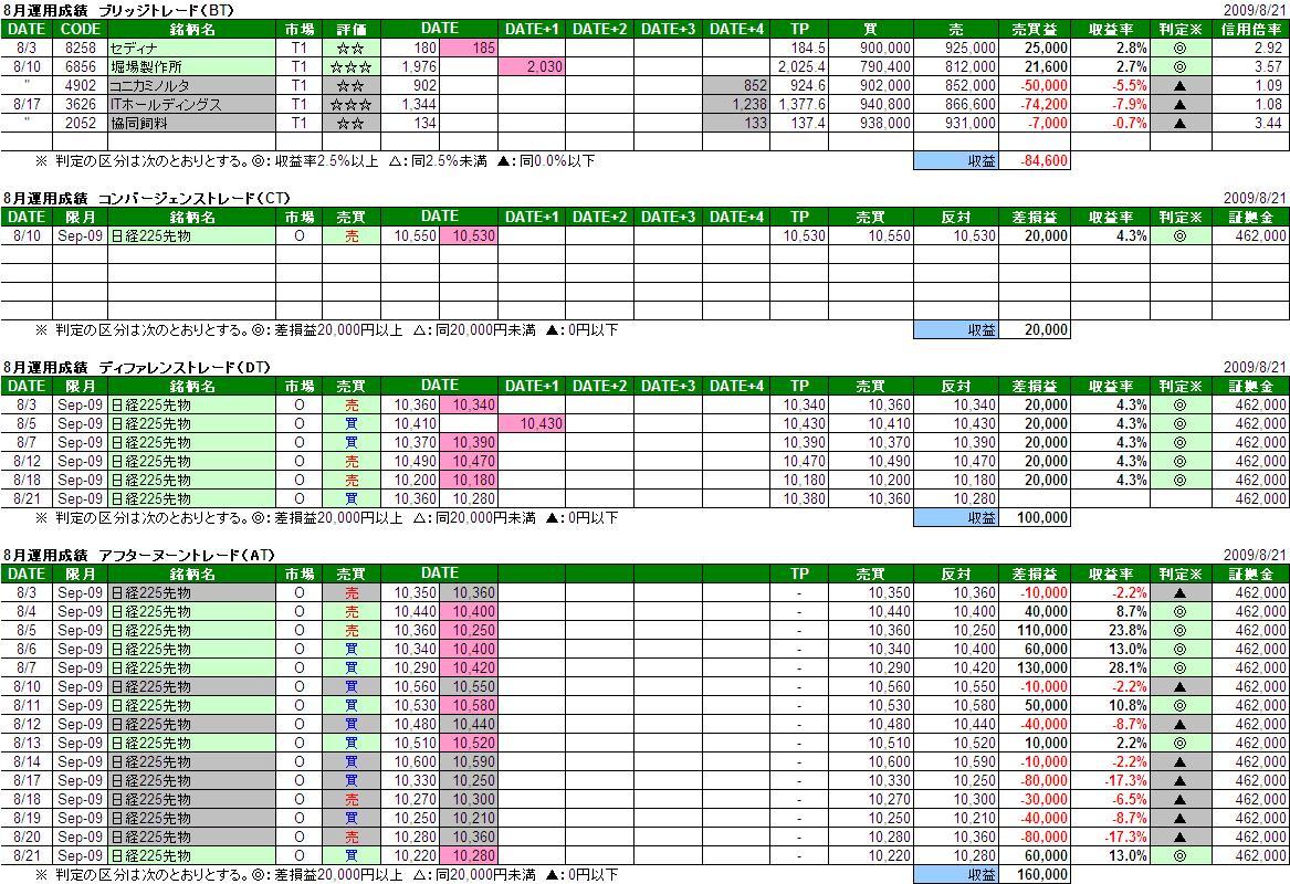 8月第3週は全体として株式▲74,200円、日経225先物▲150,000円(1枚の場合)の運用成績となりました。