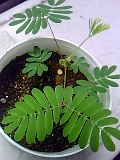 私の予想では一本のオジギソウが、ただひたすらヒョロヒョロと伸びていくと思っていたのですが、みみおさんと同じで色んなアンテナを張っているようですね。
