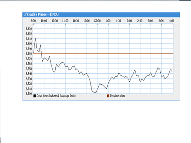 ほぼ前日終値付近で始まったダウ平均株価は、9時半過ぎには50ドル弱まで上げ幅を拡大しました。しかし、その後は調整色が強まり、36.43ドル、0.38%の下落で引けています。ナスダックもプラスでしたが、ダウと同様の展開でした。