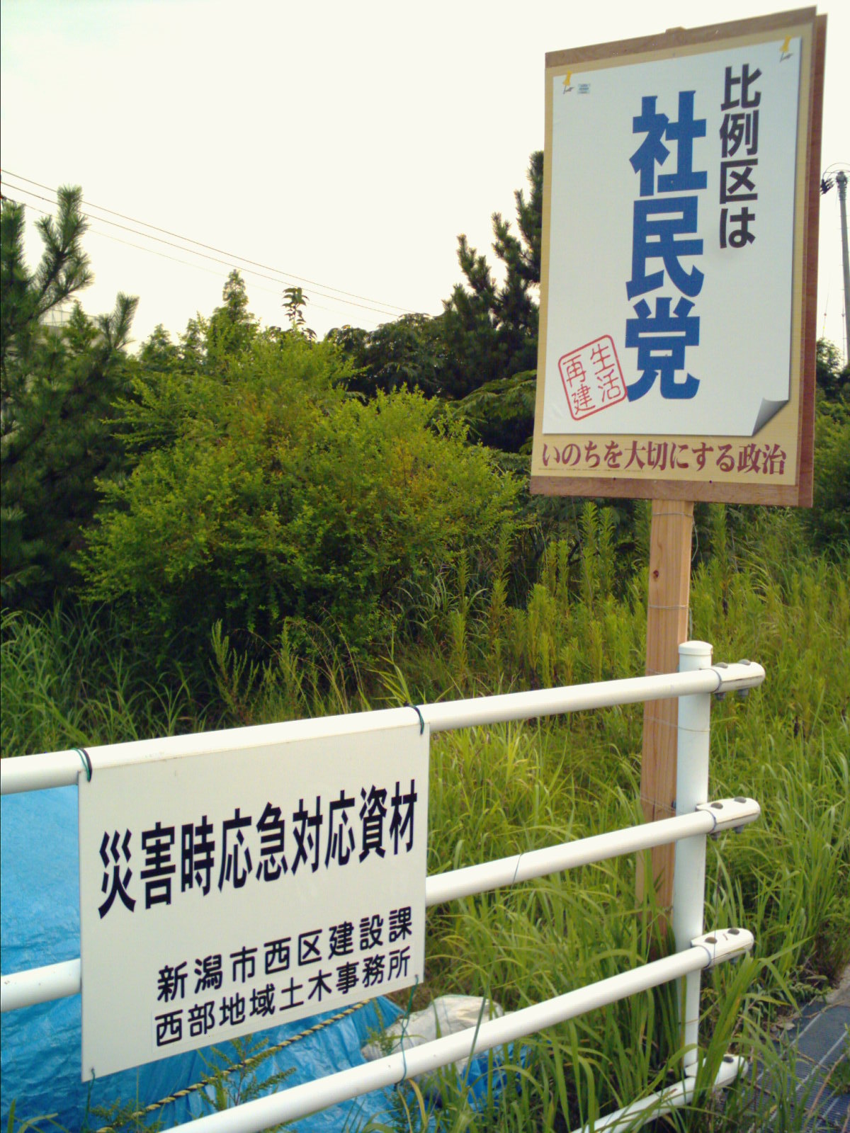 私が見かけた看板は、まだ残っています。自民の比例代表のほとんど はがれかけているもの はわびしさを感じます。