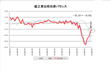 原指数の前年同月比でみれば、出荷が22.1%減少したのに対して、生産を22.9%抑制したために、在庫は前年同月を10.6%下回る水準にとどまっているため、需給バランスが崩れていません。