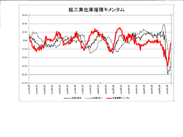 次に、出荷金額の増減率から在庫金額の増減率を差し引いた「在庫循環モメンタム」を見ると次の通りです。