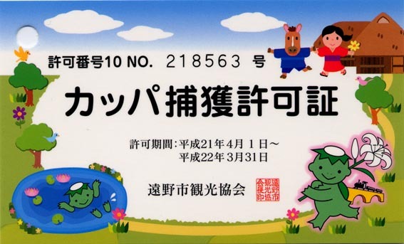 >今日「カッパ捕獲許可証」が届いてました。^^