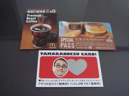 私もマクドナルドの株主優待券を使用するため行ったときコーヒ無料券をもらいました。