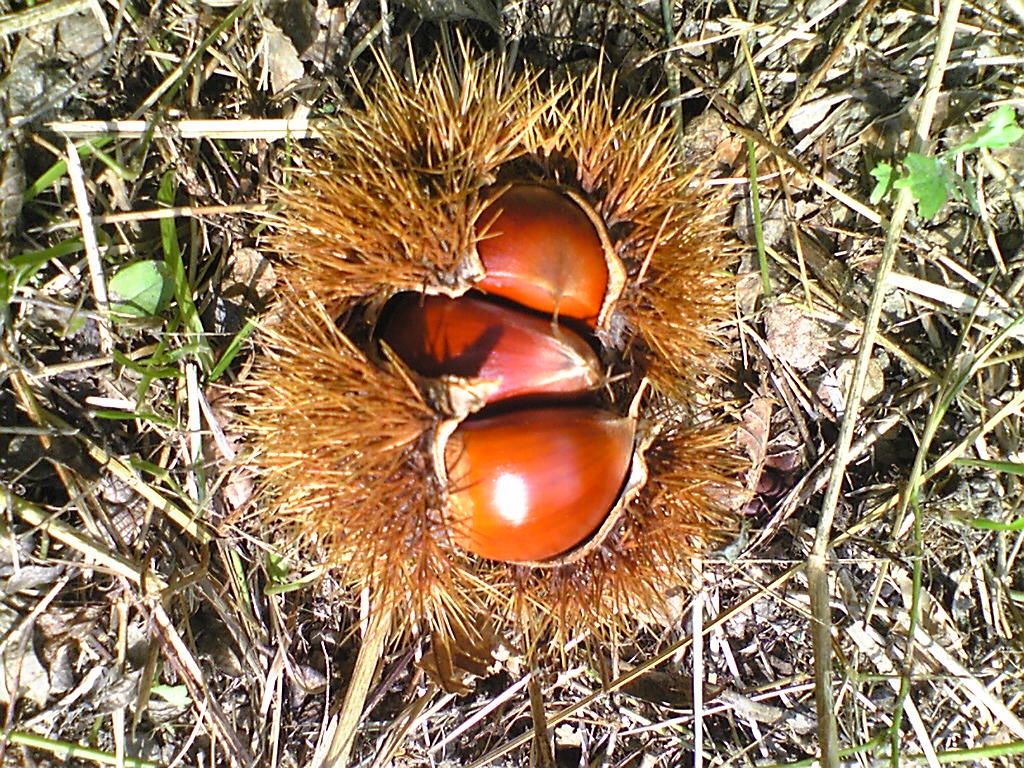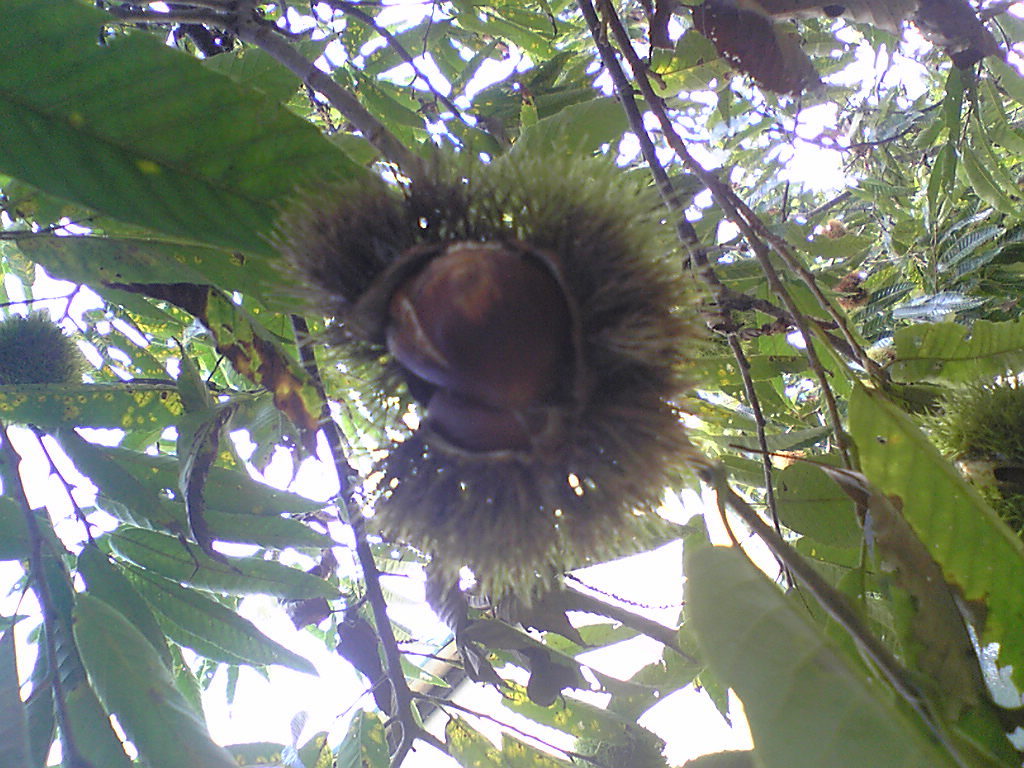 今日は長男と二人で栗拾いに行きました。歩いて2,3分の栗の木に火バサミと丈夫な袋を持って柔らかな日差しの中を行きました。近所の家のノンちゃん(雄犬)も気持ちよさそうに昼寝をしています。