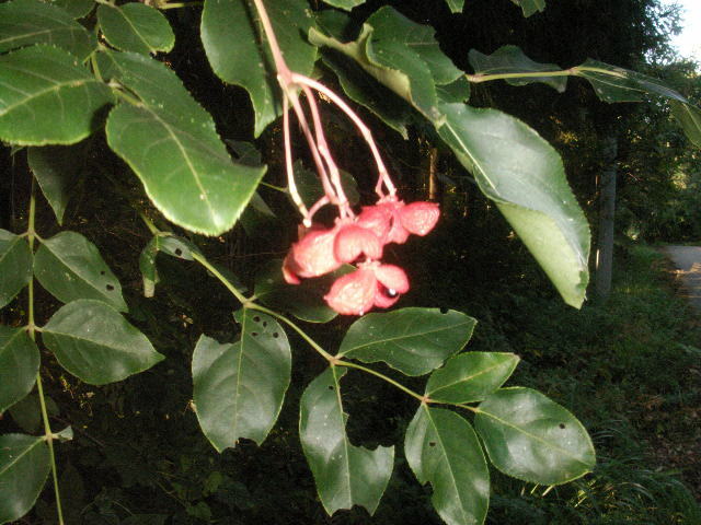 コブシかタムシバの赤い実:辛いらしい 花のつぼみを集めて薬用酒(鼻の病気に効くという)をつくったことがあるが、独特の鼻に抜けるような香り・・ちょうど、昔の病院の消毒薬の香りみたいな香り・・ があった