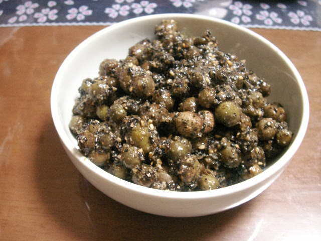 ゆでて、水切りし、ゴマと味噌をからめてフライパンで加熱する