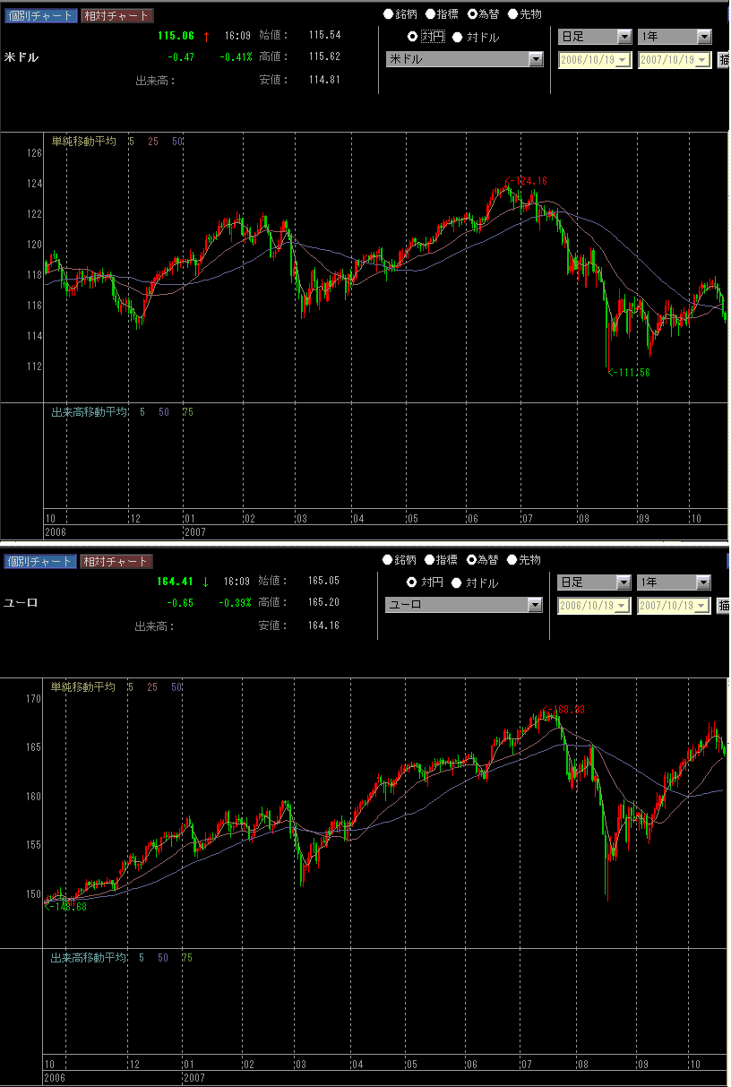FFレート利下げ後は楽観的に上げすぎてたので、これくらいの調整はしょうがないとは思いますが、動きが急で対応が大変です。