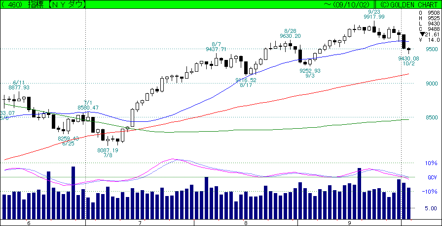 望ましいのは、日経が週明けに大きく出来高を伴って¥9,400くらいまで一気に下げ、ダウが反発すること。これならばセリング・クライマックスとなり、迷わず買いサイン。まあ、ここまで上手くことが運ぶかはわかりませぬが、なんらかの反発をそろそろ期待したいものかと存じまする。