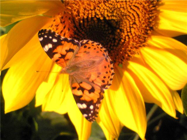 はな:ひまわりとみつばちと蝶 2009年10月04日