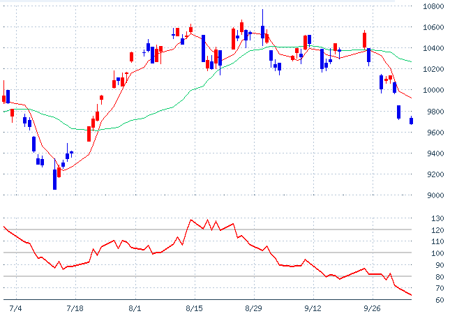 騰落レシオを追跡していますが、25日曲線で底になってきています。
