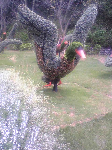 はな , とり , ふくろう:あひると、ふくろう、鵜でしょうか?面白い造詣です。浜松モザイカルチャー世界博2009にて