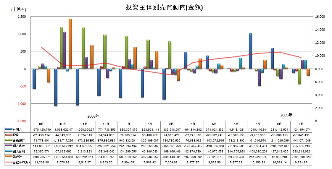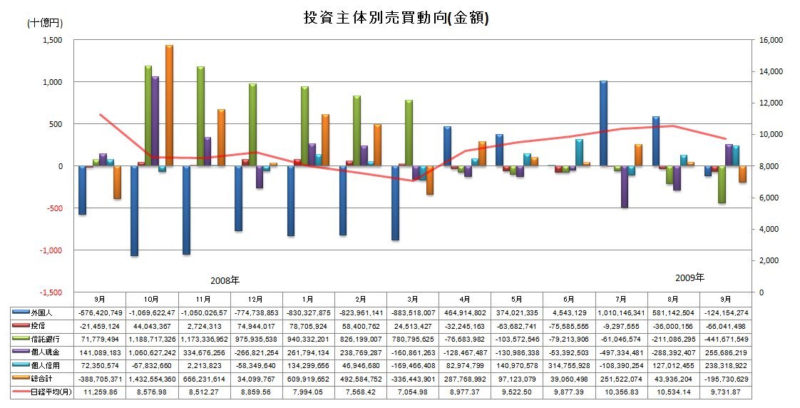 月間ベースの売り越し額としては1年半ぶりの売り越し額。