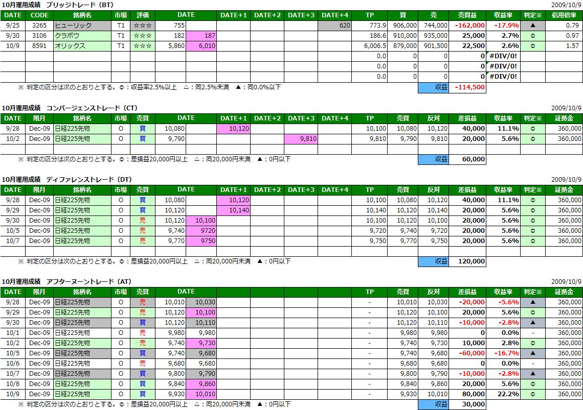 10月第2週としては株式+22,500円、日経225先物+90,000円(1枚の場合)の運用成績となりました。