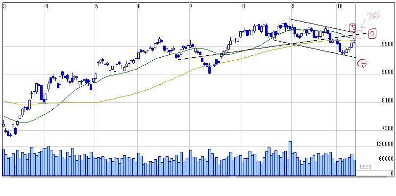 このまま横ばい中の基準線と転換線のレンジ内取引(10200-9630)になりそうな予感、、、^^;