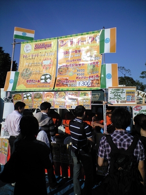 > インドの歌、踊りがステージで披露され、インドの衣装や食べ物などのテントがたくさん出店していました。