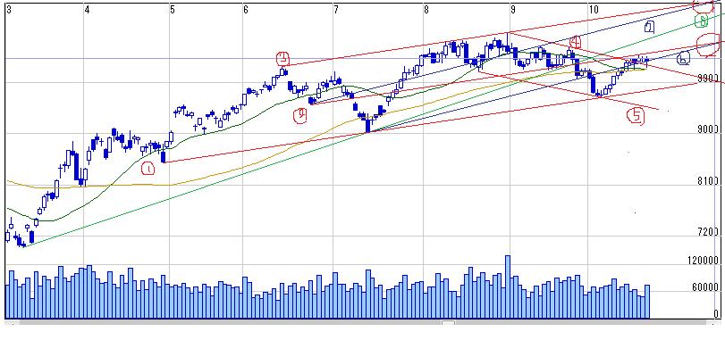 目安としていた10300を下抜けたので、寄りで10240売り、下値目途としていた10190買いがともに指値約定。