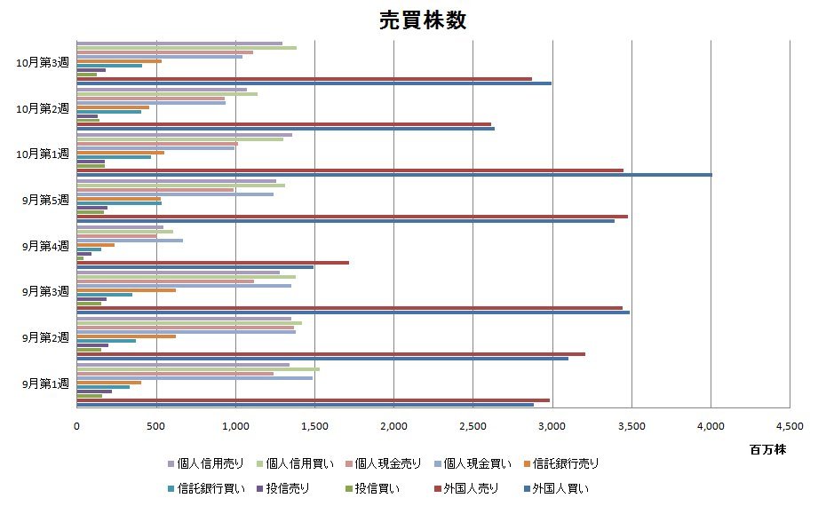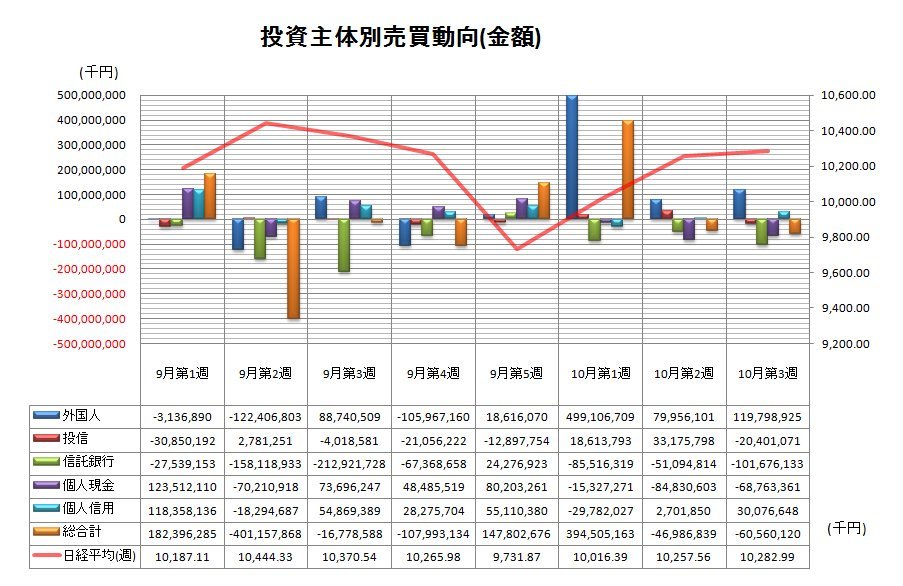 10月第3週投資主体別売買動向(グラフ)