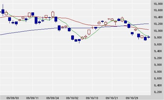 日経平均株価 9,789.35 +71.91 +0.74%