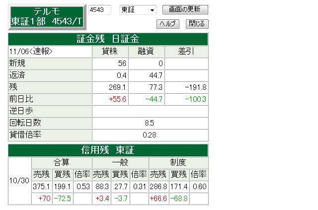 引け前に大口買い連発高値ひけ。雇用統計前だし、空売りの買い戻しかな???と思って貸借倍率みると、、、