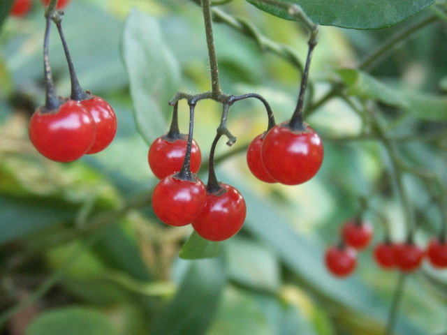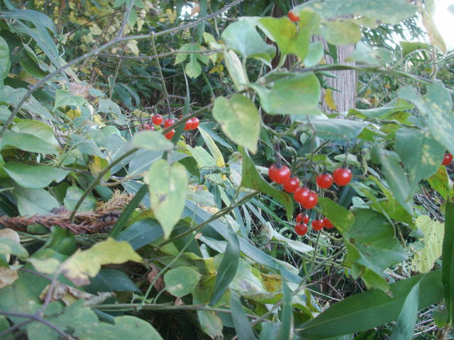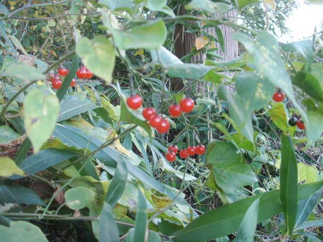 秋の山際をいろどる、赤い実。つやつやで旨そうだが、毒ありとされてます。薬草でもあります