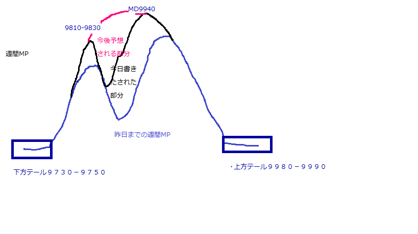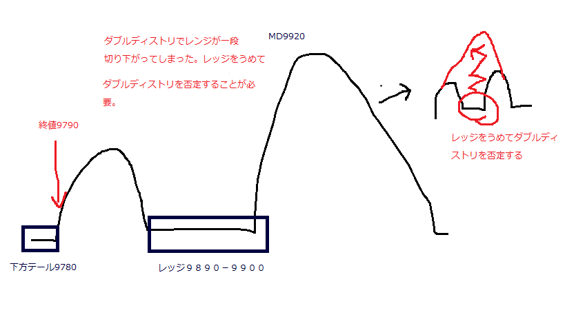 明日はレッジをうめてダブルディストリを拒否する動きになるのか、それとも下方テールを埋める動きになってしまうのか、、、注目。