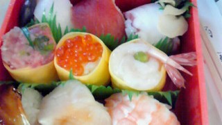 タイトルどおり、きれいな色どりの手鞠寿司ですね。