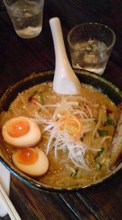 太麺でこってりのみそラーメン大盛りだからお昼食べた後の俺にはつらかった。