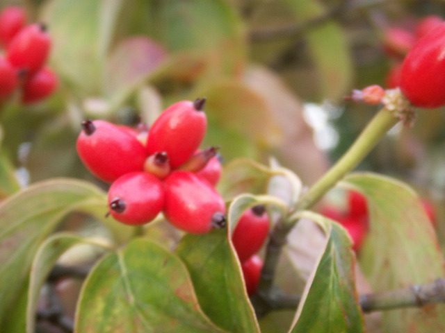 写真2:もう、この寒さで落果したが、落果前のハナミズキの赤い実