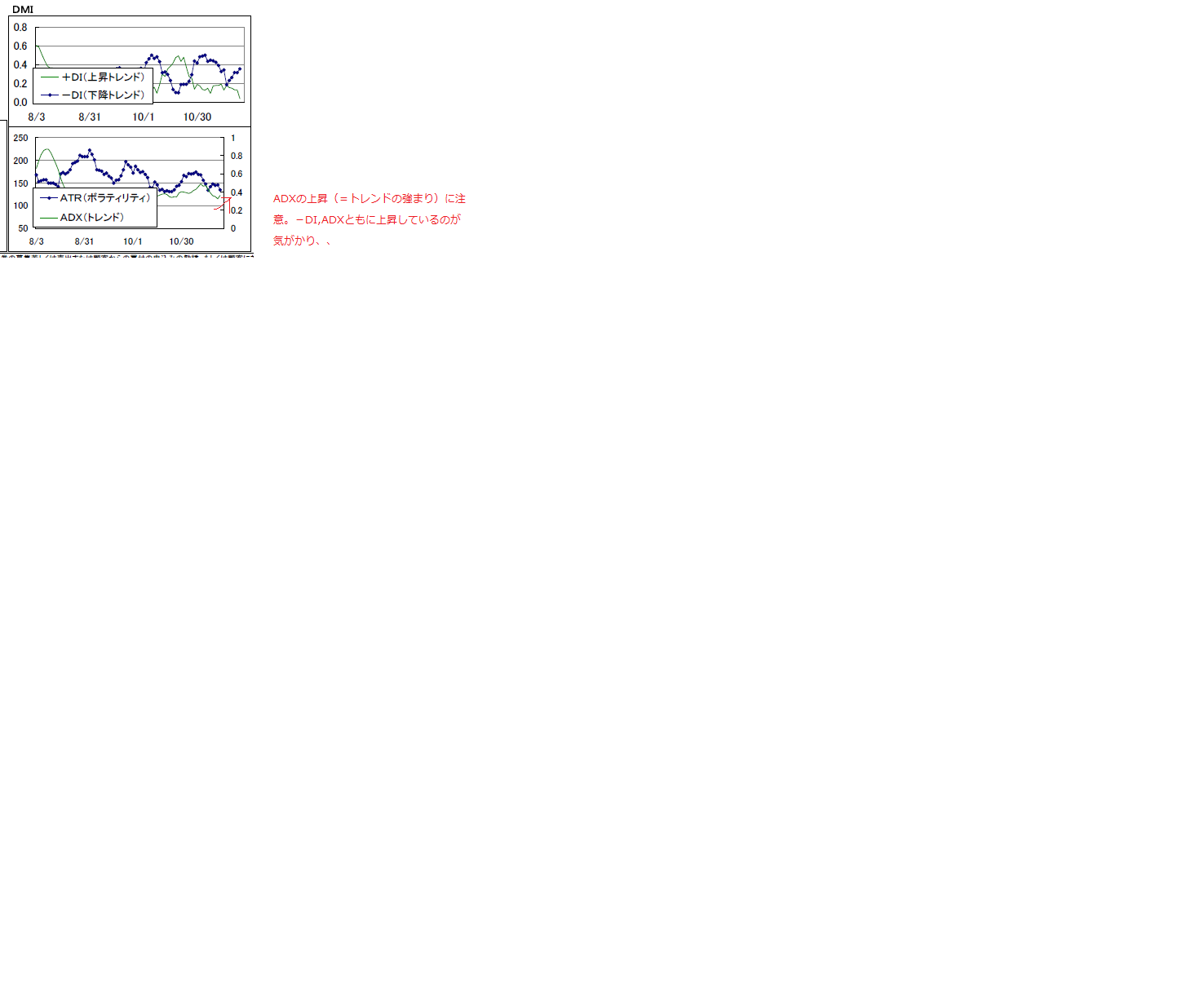 ・-DIは上昇(下落トレンド継続中)