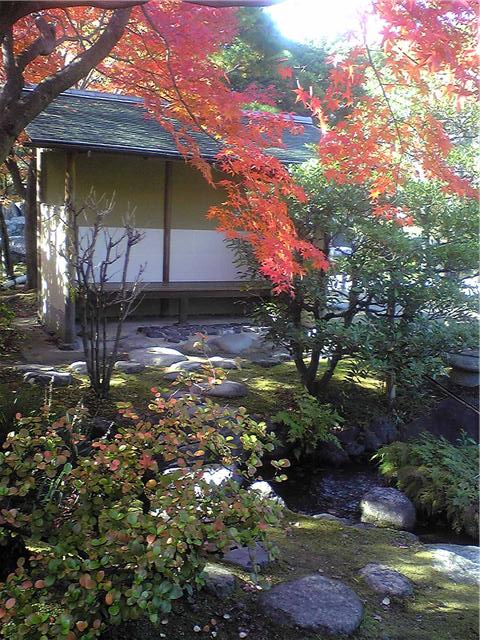 紅葉、冬支度、白鳥庭園 、お茶:紅葉に冬支度の整った白鳥庭園、連日お茶会です。