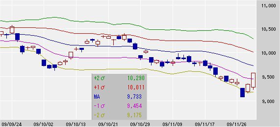 25日移動平均線 9,733↓