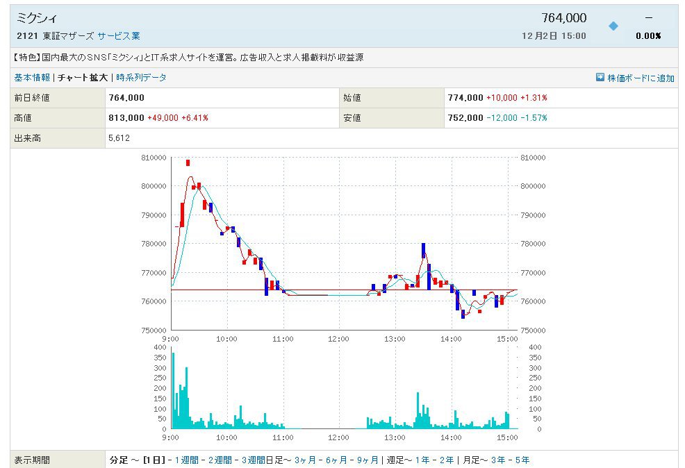 はい、761000円で2株約定してますさかい、後場と明日は皆さん、強気の買いか弱気の売りを入れるとおもいますから、高いとこで、また1株売るとよろしいで。780000円位で売りだされると、よろしいかと・・・