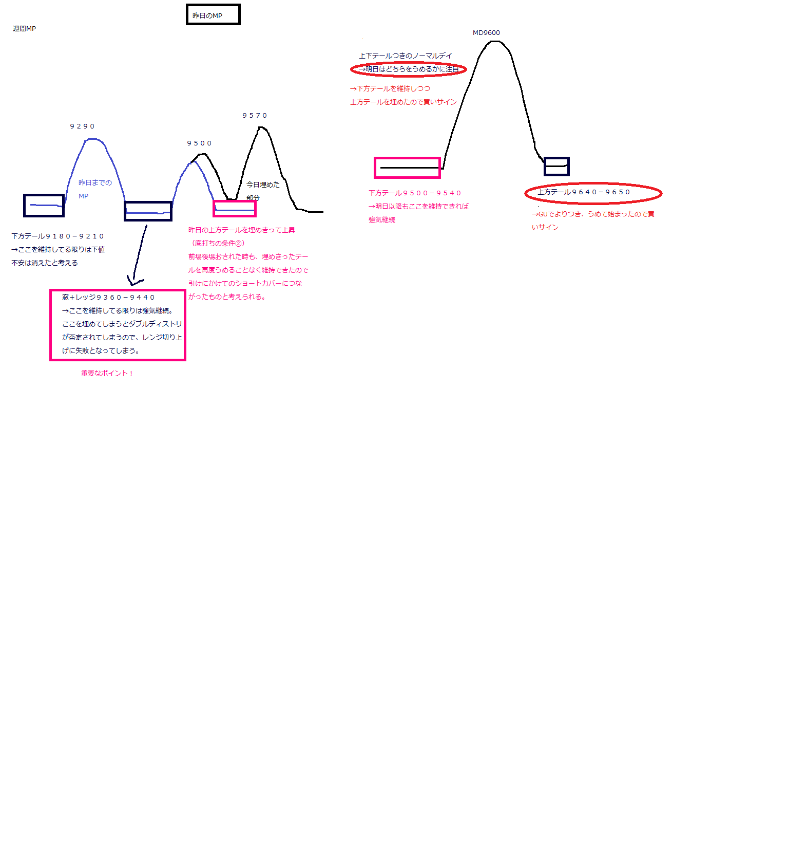①は昨日のチャートポイントの結果と今日の相場のまとめ、