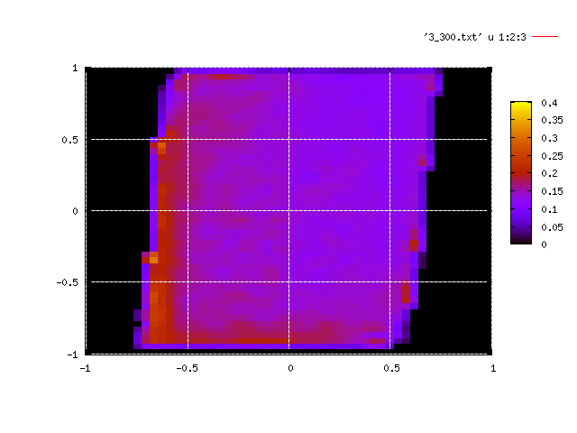 ヒストグラムからxn,ynがともに十分大きいか、小さいところに分布していることが分かり、それ以外の領域では分布は少なくデータに信用性は無い。