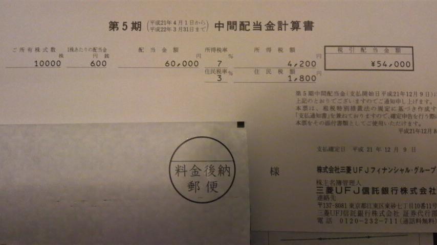 帰宅すると、なんと、三菱UFJから封書が。