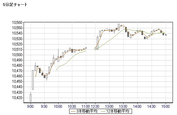 日経平均株価 10,536.92 +158.89 +1.53%