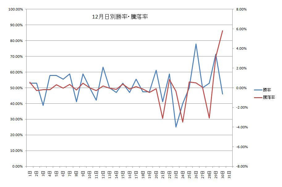 27日の勝率:50.0% 平均騰落率:0.01%