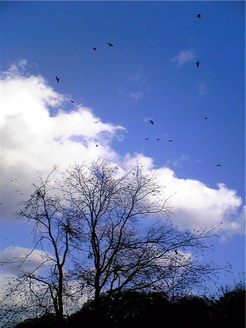 カラス , とり , ヒッチコック 大高緑地:ヒッチコックの映画だったか、映画に出てきそうな集団です。オオタカなどもいますが襲われているのを見たことがあります。集団の力がすごいのと、体の大きさも変わらないぐらい大きいです。