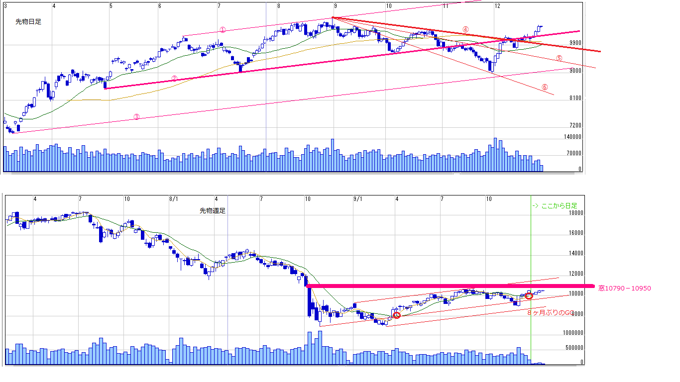 ・ファンラインブレイクで8月からの下落トレンドは終了し新たな上昇トレンドに入ったたものと考える。
