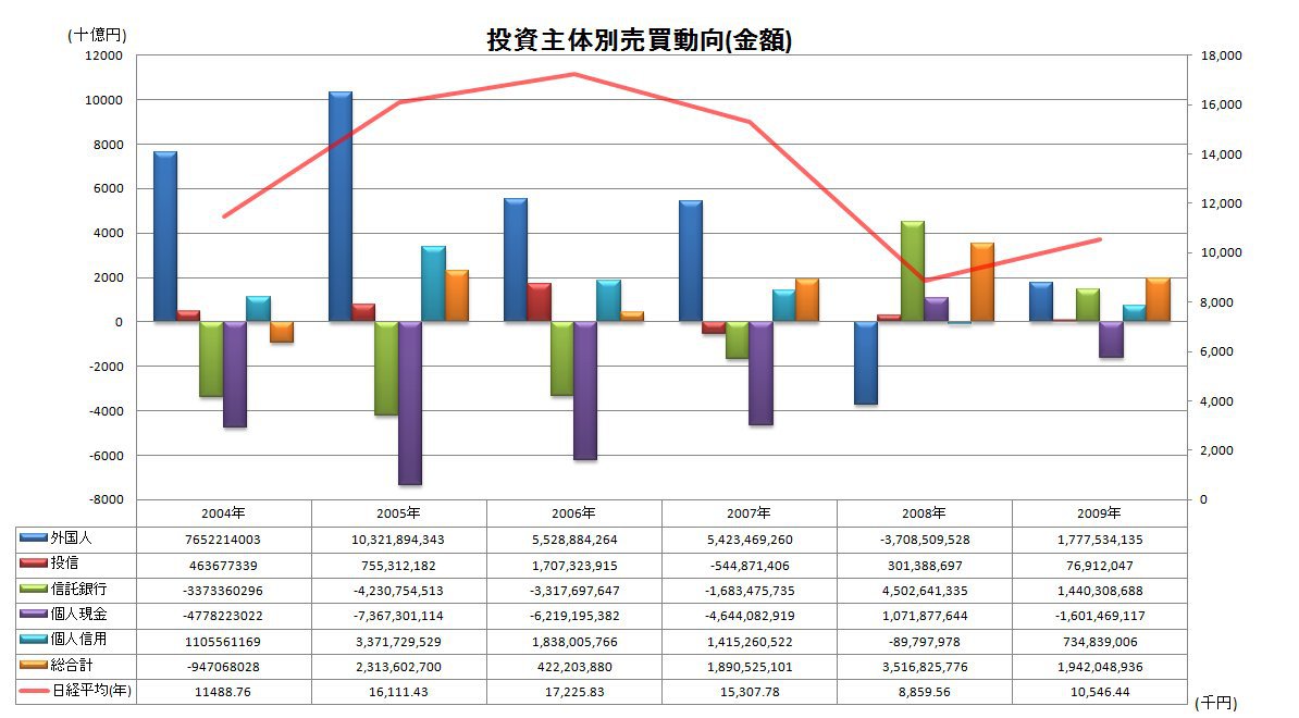 個人の現金は1兆6014億円の売り越し。