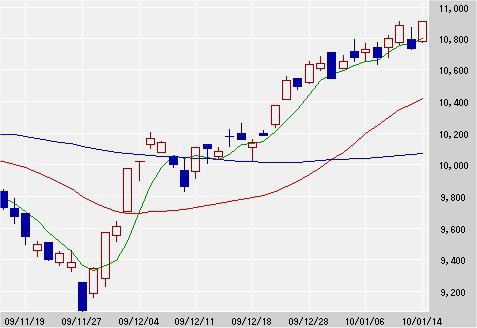 日経平均株価 10,907.68 +172.65 +1.61%